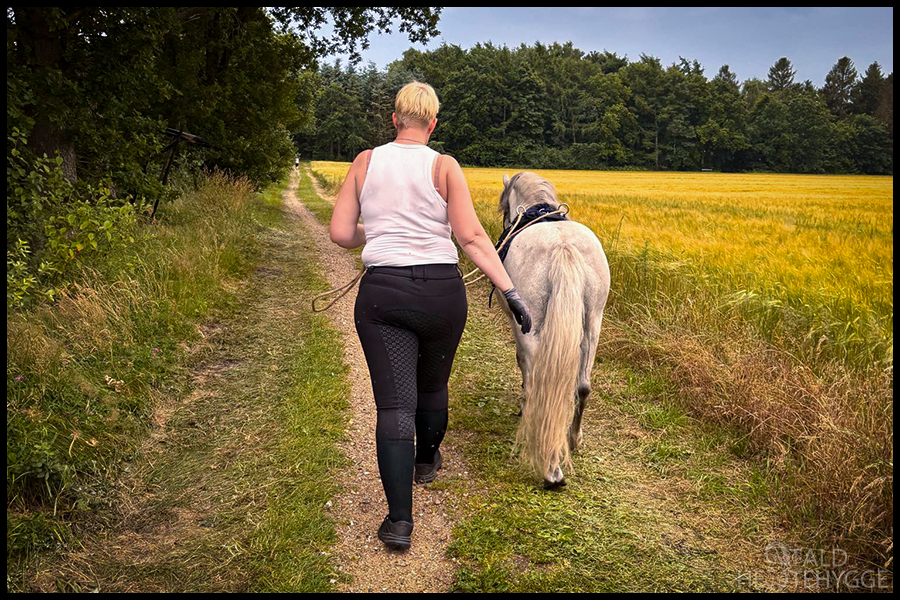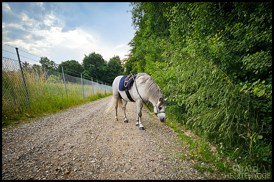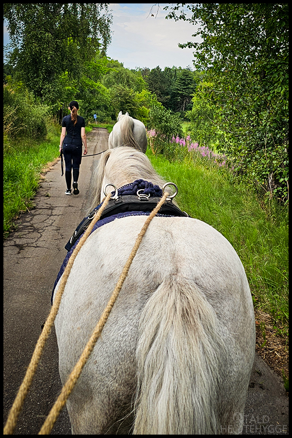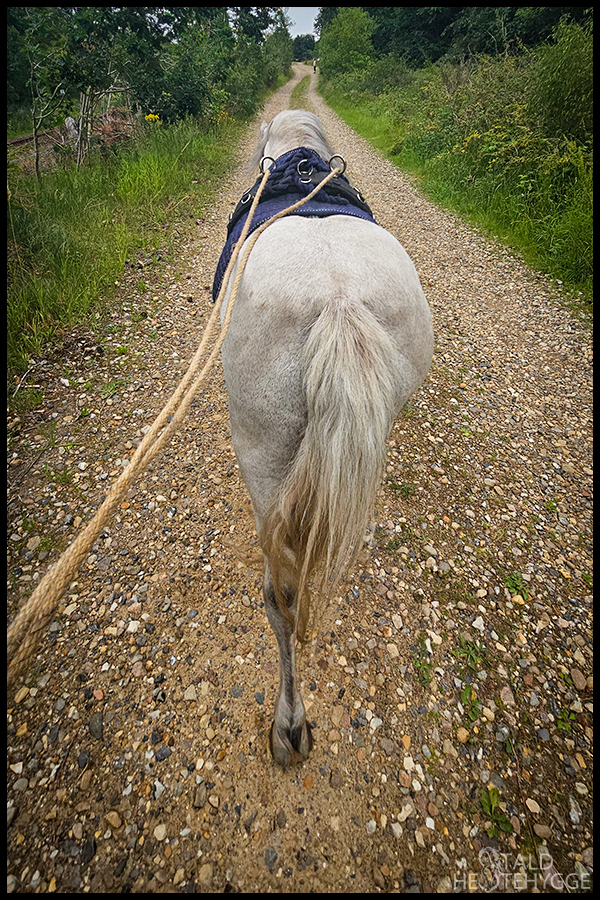 Lille Sille nød turen som altid. Vi er begyndt at arbejde en del i de lange liner, og han er blevet dygtig til at gå forrest. Vi bruger stemmekommandoer og tøjlesignaler, og vi bliver hele tiden dygtigere sammen.