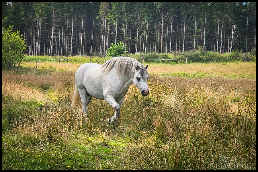 Jeg nyder sommeren med Silver. Vi hygger os, og træner mange små sjove ting på ridebanen samt går skønne ture i skoven. Vi bruger mange timer på bare at være sammen på folden. Han følger ofte med, når jeg går og tjekker hegnet og fjerne brandbægre og andet, der ikke skal være på marken.