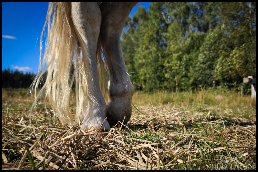 Silver står og hviler. Jeg synes det er noget med dette bagben, som han står og hviler på, men jeg kan ikke helt sætte min finger på det. Nogle dage virker han urentgående, og andre dage er der intet. Jeg ved, at han tumler lidt, og hans overvægt er nok en medvirkende faktor til en eventuel skade. Men det er bare svært lige at finde ud af, om der er noget galt, og hvad det kan være…