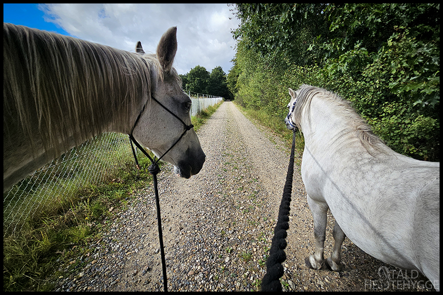 Sedoj gik på venstre side, og Silver på højre, og det gik så fint. Når der var noget, der var lidt farligt, smuttede Silver om bag mig eller Sedoj. Det var en rigtig hyggelig tur.