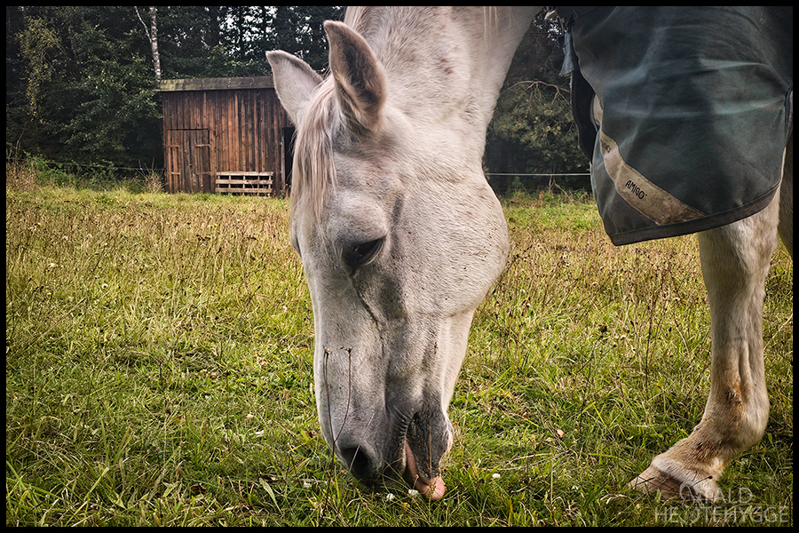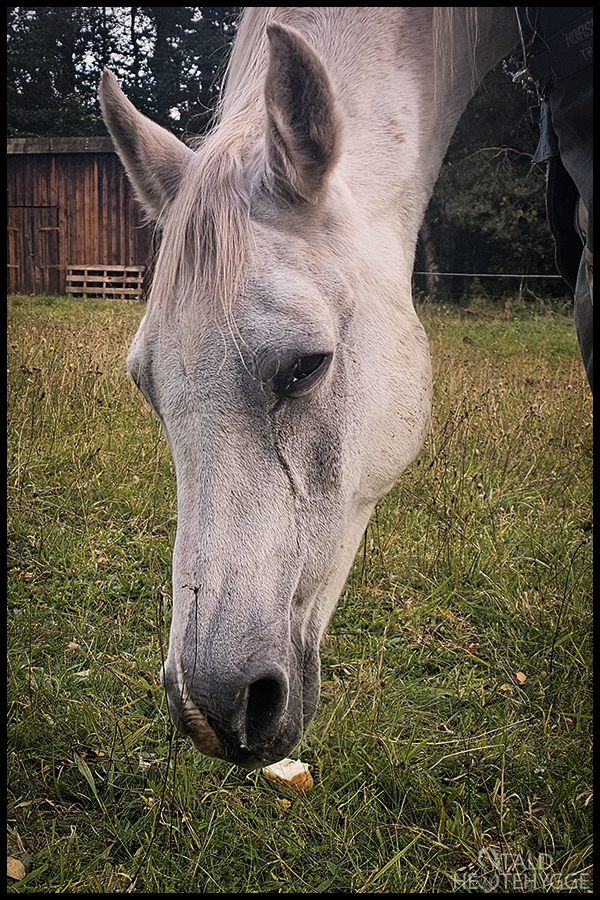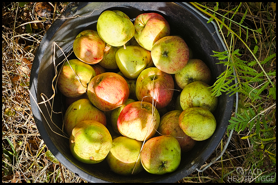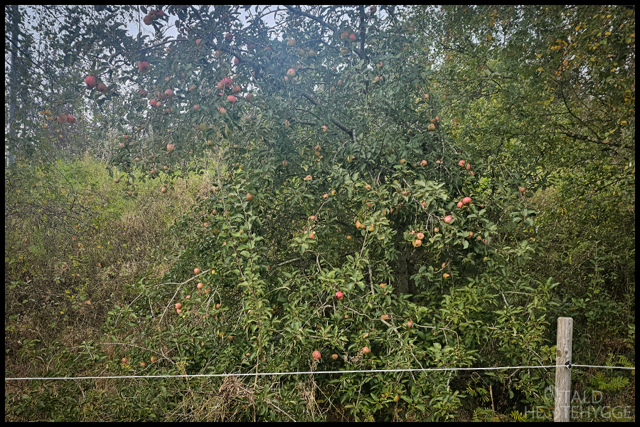 Lige uden for hegnet på vinterfolden står et æbletræ. Det har efterhånden vokset sig stort, og giver i år mange æbler. Hestene nyder denne efterårssnack, og jeg kan vente lidt med at købe gulerødder, så det er helt perfekt. Det er trods alt lidt penge sparet, og hvilken hesteejer sætter ikke pris på det. Hestene elsker æblerne, så nogle bliver smidt på folden, andre bliver lagt i wrappen, og resten bliver brugt som godbidder og snacks.