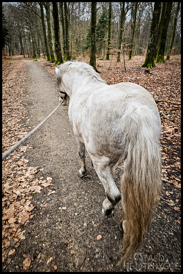 Silver har travlt, når vi går tur, men jeg arbejder på, at få ham til at gå i skridt, da dette er bedre i genoptræningen end småtrav. Han bliver bedre, men hans genfundne energi siden opstart med medicinen gør det lidt svært for ham nogle gange.