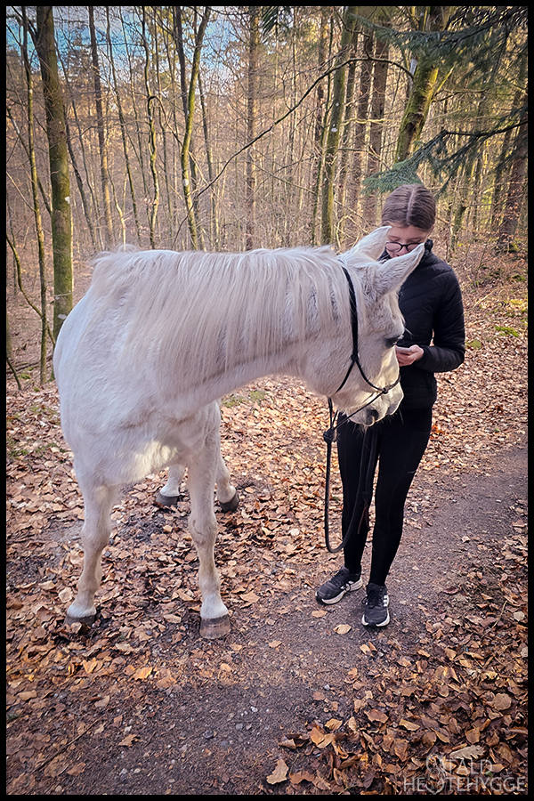 Min datter har en stor interesse inden for flere sportsgrene, og dagens tur blev derfor forstyrret lidt af en vigtig fodboldkamp. Med telefonen i bukselommen, kunne hun følge med i kampen, og det er jo også en form for miljøtræning. Sedoj var som forventet fuldstændig ligeglad.