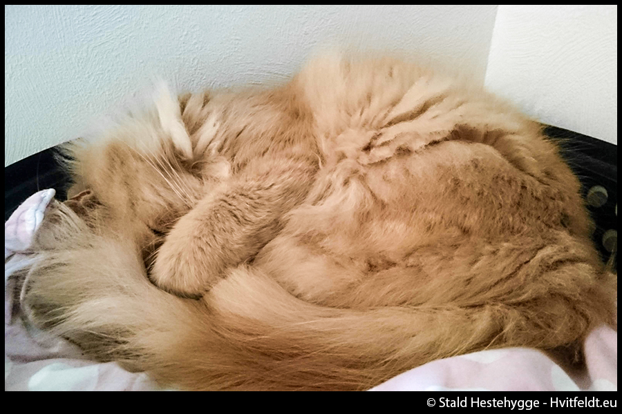 Endelig skulle vi ud og kigge killinger på gården, hvor der fandtes det dejligste kuld killinger, og der var en rød tilbage. Denne lille 13 ugers cremefarvede killing fra den 7. maj 2014 lå i græsset, og kiggede lidt dovent på os, da vi kom gående om hjørnet. Det virkede som om, at han var klar over, at han var lidt lækker. Her i det grønne græs og omgivet af sin søskende, var der dømt tid til solbadning, leg, klatring i træerne, og selvfølgelig at blive kælet for. Kort sagt var det hele bare ret hyggeligt.