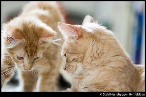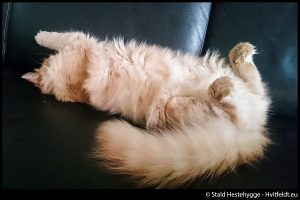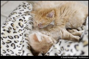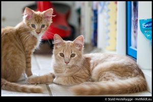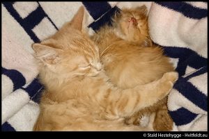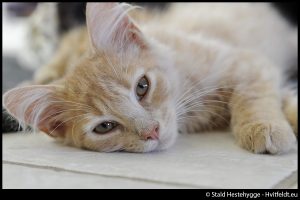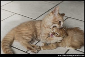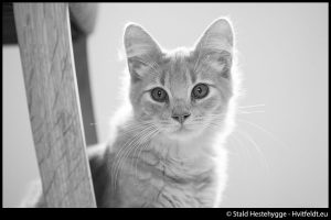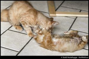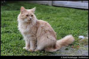 Endelig skulle vi ud og kigge killinger på gården, hvor der fandtes det dejligste kuld killinger, og der var en rød tilbage. Denne lille 13 ugers cremefarvede killing fra den 7. maj 2014 lå i græsset, og kiggede lidt dovent på os, da vi kom gående om hjørnet. Det virkede som om, at han var klar over, at han var lidt lækker. Her i det grønne græs og omgivet af sin søskende, var der dømt tid til solbadning, leg, klatring i træerne, og selvfølgelig at blive kælet for. Kort sagt var det hele bare ret hyggeligt.
