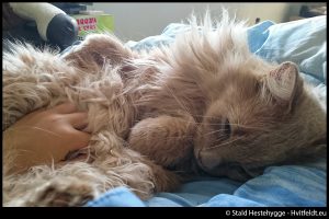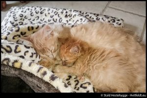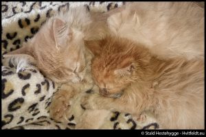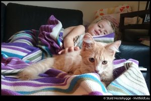 Knold havde simpelthen den største tålmodighed med børn. Selv om jeg forsøgte, at fortælle min datter, at hun skulle lade Knold være en gang imellem, så var virkningen bare ikke så stor, når katten spandt, gned næser og med al tydelighed elskede at blive båret rundt på. Min datter knuselskede (og det gør hun stadig) Knold over alt på jorden, og hun viste ham det flere gange om dagen – og det var gengældt. De to sov sammen om natten, og det var helt sikkert, at de hyggede sig med den ordning begge to.