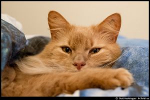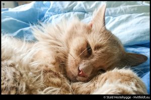 Jeg faldt ret hurtigt for hans milde udtryk – der var noget næsten majestætisk over måden, som han lå og kiggede på os. Han var ligeglad med, at familiens hund med stor iver kom løbende hen, og snuste til ham. Han var også ligeglad med, at min datter meget målrettet gik hen for at snakke og nusse med ham. Han blev bare ved at blive liggende i samme afslappede stilling, og begyndte at spinde.
