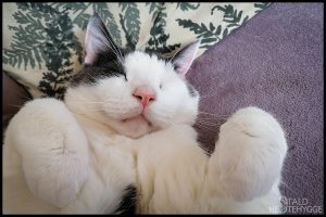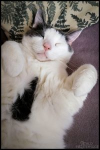 Jeg glemmer aldrig den første gang, hvor han kravlede op på mine ben, og lagde sig til at sove oven på mig. Det skete enkelte gange, at han kom hen til mig, og faldt i søvn ovenpå mig. Det var en ret stor ære, og jeg ventede altid tålmodigt, indtil han vågnede og rejste sig. Jeg kunne ikke ae ham, når han kom hen til mig på den måde, men vi var bare sammen på hans præmisser.